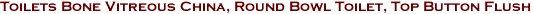 Our Water Saving Top Flush Bone Vitreous China Toilet (Round Bowl) has two water saving flush modes integrated into a plastic faux chrome, top flush button design. Low flush uses only 3 liters (.8 gallons) of water. Normal flush uses 6 liters (1.6 gallons) of water. Crafted from Grade A Glazed Vitreous China. Includes a quiet "No Slam" plastic Round toilet seat. Standard 12" rough-in. Measures: 28-5/8" overall height x 14-1/4" Bowl width x 14-1/2" bowl height. Overall projection = 26-1/2". Tank Measures:15-1/4" high x 17-7/8" wide. Order Your Water Saving Dual Top Flush Bone, Round Bowl Toilet Today! Sorry, this item is Sold Out, and unavailable at this time. Thanks!