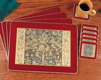 Sturdy DecorativeCoasters. Pick out yourCoasters here today. These coasters have a sturdy, heat resistant (to 110 degrees) laminate finsh. All you need to do is wipe clean with a damp cloth. The coasters measure 4" square. This set includes Six coasters. Placemats not included Order Your Six Piece Coaster Set Today!