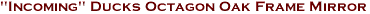 Our Octagon "Incoming" Ducks Etched Mirror by Rick Kelley is hand-selected for luster, framed in hand-rubbed hardwood, and is ready to hang. Reflect personality and image, while soothing the psyche with this functional artwork. Several sizes are available for your choosing. Measures: 13" x 13". Order Your Solid Oak Framed "Incoming" Ducks Octagon Mirror Today!