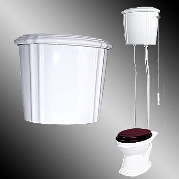 Our Stylish Victorian High Tank Pull Chain Toilet captures the grandeur and elegance of the past, while offering great performance. Features a hard fired ceramic tank, an attractive chrome supply line, and a Grade A Vitreous China Elongated Bowl. Ready to install with all mounting hardware, supply line & angle stop valve. Components have been updated with water-saving 1.6 gallon flush. Note: Seat not included. Total Height: Adjustable 74" - 78". Tank Measures: 18-1/4" wide x 10" deep. Tank height measures 16". Supply Line: 1/2". Adjustable 22" - 53". Tank Pipe: L-Style, 1 1/2" diameter. Adjustable 44" - 48" height. Bowl Measures: 15" w x 14-3/4" h. Bowl Projection 27". Installed Projection: 27-1/2" - 30-1/2". Obtain Your High Tank Victorian Toilets Here Today! Note: This item is in production. Timing for shipment has not been determined. Thanks!