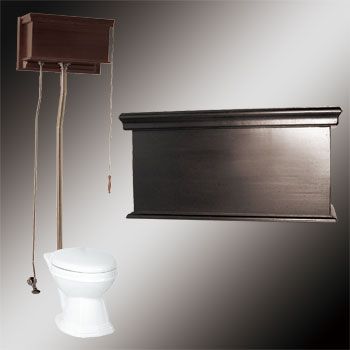 Our Stylish Victorian High Tank Pull Chain Toilet captures the grandeur and elegance of the past, while offering great performance. Features a Beautiful Dark Oak Wood Paneled Tank, an attractive chrome supply line, and a Grade A White Vitreous China Round Bowl. Ready to install with all chrome mounting hardware, supply line & angle stop valve. Components updated to water-saving 1.6 gallon flush. Note: Seat not included. Total Height: Adjustable 70" -74" Tank Measures: 23" wide x 10 1/2" deep. Tank height measures 15". Supply Line: 1/2"/adjustable 22"- 53-1/2". Tank Pipe: L-Style, 1 1/2" diameter x 49 1/4" high. Drain Pipe: Adjustable 44" - 48". Bowl Measures: 15" h x 15" w. Bowl Projection; 25-1/2" with adjustable 12" to 15" rough-in. Installed projection: 26-1/2" - 29-1/2". Obtain Your High Tank Victorian Toilets Here Today!
