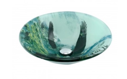 Glass Vessel Sinks: Our American Bald Eagle Washbowl measures 16 1/4 in. in dia. x 5 1/2 in. deep x 3/4 in. thick double layer glass. Includes unique pop-up drain and gasket. Find the right faucet to complement your sink. See our wide selection of faucets. Order Your American Bald Eagle Washbowl Vessel Sink Today! Sorry, this item is Sold Out, and no longer available. Thanks!