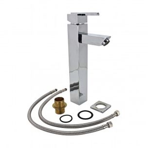 Our Square Chrome 12-1/4" Single Lever Faucet is constructed of Solid Brass, Chrome-plating finish, and has a top rated 500,000 cycle cartridge. Our faucets, are the best engineered Faucets you can find with all the features found only in the most expensive Faucets. Features The finest, precision-machined solid brass construction with no zinc alloys, and tarnish free chrome-plating.This single lever faucet has a straight spout and a square body. Faucet comes with supply lines and mounting hardware. Measures: 12-1/4 in. high and 5-1/2 in. from spout to counter. Projects 5-1/2" Order Your Square Single Lever Faucets Today!