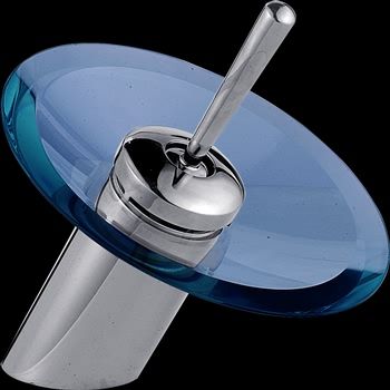 Our Brass/Blue Glass Chrome Waterfall Single Straight Lever Faucet is constructed of Solid Brass, Chrome-plating finish, and has a top rated 500,000 cycle cartridge. Our glass disks match our glass vessels' color schemes. Our faucets, are the best engineered Faucets you can find with all the features found only in the most expensive Faucets. Features The finest, precision-machined solid brass construction with no zinc alloys, and tarnish free chrome-plating. This single lever faucet has a straight lever and tempered glass waterfall disk. Faucet comes with supply lines and mounting hardware. Measures: 7" in overall height. 2" in height from glass dish to countertop. Glass Plate measures 6 3/4". Order Your 7" Blue Glass Waterfall Single Lever Faucets Today! Sorry, this item is Sold Out, and no longer available. Thanks!