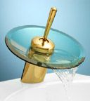 Our Brass/Light Blue Glass Waterfall Single Straight Lever Faucet is constructed of Solid Brass, protected with our PVD Finish, and has a top rated 500,000 cycle cartridge. Our glass disks match our glass vessels' color schemes. Our faucets, are the best engineered Faucets you can find with all the features found only in the most expensive Faucets. Features The finest, precision-machined solid brass construction with no zinc alloys. This single lever faucet has a straight lever and tempered glass waterfall disk. Faucet comes with supply lines and mounting hardware. Measures: 7" in overall height. 2" in height from glass dish to countertop. Glass Plate measures 6 3/4". Order Your 7" Light Blue Glass Waterfall Single Lever Brass Faucets Today! Sorry, this item is Sold Out, and no longer available. Thanks!