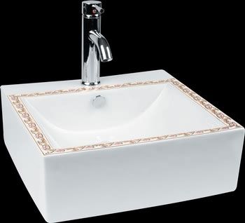 Our Plaza White Vitreous China Vessel Sink with its unique design, will dramatize your bathroom. This countertop vessel sink is designed to make hand and face washing enjoyable. Made of Grade A white vitreous china with intricately painted rim accents. Measures: 18 1/2"wide with a 18 1/2" projection. Overall Height 6 1/4". Bowl depth 4 1/2" Accepts single hole faucet sets. Drain and faucet not included. Order Your Plaza China Vessel Sink Today! Sorry, this item is Sold Out, and no longer available. Thanks!