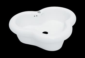 Our Clover White Vitreous China Vessel Sink with its distinctive design, is the perfect touch for that special bathroom. Made of Grade A white vitreous china, this unique clover shaped, countertop vessel sink is designed to make hand and face washing enjoyable. Sits prominently on the countertop. Measures: 20" wide x 15-1/2" projection. Overall height 6". Bowl depth 4-3/8". Inside left to right 16-1/4". Inside front to back 11-1/4". Requires tall, backset single handle faucet or wall mount faucet set. Drain and faucet not included. Order Your Clover White China Vessel Sink Today!