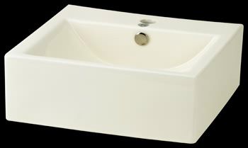 Our Bostonian Bone Vitreous China Vessel Sink with its distinctive design, is the perfect touch for that special bathroom. Made of Grade A bone vitreous china, this rectangular countertop vessel sink is designed to make hand and face washing enjoyable. Sits prominently on the countertop. Measures: 18-1/8" wide x 18" projection. Overall height 6-3/8". Bowl depth 4-1/8". Inside bowl width 15". Front to back inside 12". Requires single hole sink mount faucet set. Drain and faucet not included. Order Your Bostonian Bone China Vessel Sink Today! Sorry, this item is Sold Out, and no longer available. Thanks!