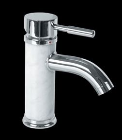 Our White Marble & Chrome Single Lever Faucet is constructed of Solid Brass, Chrome-plating finish, and has a top rated 500,000 cycle cartridge. This sleek single lever faucet features a white marble body. Faucet comes with supply lines and mounting hardware. Features The finest, precision-machined solid brass construction with no zinc alloys and tarnish-free chrome finish. Measures: 6 in. high and 2-5/8" in. from spout to counter. Projects 6-1/4". Order Your White Marble & Chrome Single Lever Faucets Today! Sorry, this item is Sold Out, and no longer available. Thanks!