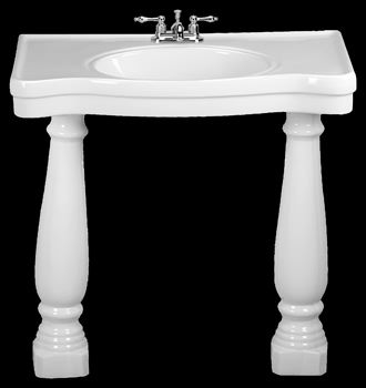 Our brings elegance to any bathroom. The Belle Epoque Console Sink not only radiates new vintage charm, but it is also functional. Provides spacious countertop with a protective splashguard rim. Has a self-draining soap dish and sits at an ergonomic perfect-height to ease body strain. Logo is featured on sink. ASME and ANSI compliant. Features a 4" center faucet spread. Measures: 35-1/2" W x 33-1/4" H. Projects 19-3/4". Sink Opening Measures: 18" W x 12-3/4" front to back, with a depth of 6". Legs Measure: 29-1/2" H.. Order Your Belle Epoque White Vitreous China 2 Spindle Roman Leg Console Sink Today! Sorry, this item is Sold Out, and no longer available. Thanks!