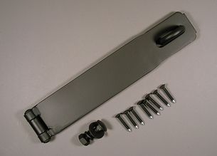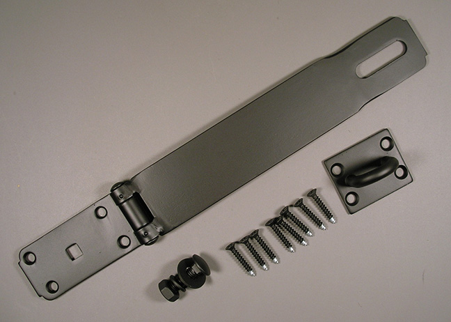 Our Black Wrought Iron 10" Hasp provides security with the strength and beauty of solid wrought iron. Made With 1/8" steel bar. This hasp is hand-forged by our skilled blacksmiths, and built to last. Provides an Old World Colonial charm. Features a clearcoat protective finish. Measures: 14-1/2 in. x 2 in. including mounting plate. Strap measures 10". Custom sizes can be obtained by request. We offer a 12" strap size in our drop-down menu below. Mounting screws included. Order Your Custom Forged Black Wrought Hasps Today!