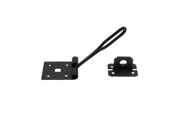 Our Black Wrought Iron 5" Wire Hasp provides fabulous detail, and the beauty of solid wrought iron. This hasp is hand-forged and built to last. Provides an Old World Colonial charm. Features a clearcoat protective finish. Measures:5 in. x 1-3/4 in. including mounting plate and keeper. Mounting screws included. Order Your Black Wrought Wire Hasps Today! Sorry, this item is Sold Out, and unavailable at this time. Thanks!