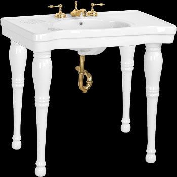 Our brings elegance to any bathroom. The Belle Epoque Console Sink not only radiates new vintage charm, but it is also functional. Provides spacious countertop with a protective splashguard rim. Has a self-draining soap dish and sits at an ergonomic perfect-height to ease body strain. Logo is featured on sink. ASME and ANSI compliant. Features a 8" center faucet spread. Measures: 35-1/2" W x 33-1/4" H. Projects 19-3/4". Sink Opening Measures: 18" W x 12-3/4" front to back, with a depth of 6". White Birch Tapered Wooden Spindle Legs Measure: 29-1/2" H x 4-3/4" diamter at widest point. Order Your Belle Epoque White Vitreous China 4 Spindle Leg Console Sink Today!