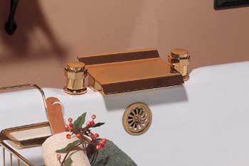Roman Tub Filler sets that are superbly built and look fabulous. Three-piece tub faucet gives a waterfall effect. Tub spout measures 8 1/8" wide x 1 5/8" high with a 6 1/4" projection. Cast brass. Features trouble-free ceramic washerless valves with a no-drip guarantee. Polished and lacquered. Sorry, this item is Sold Out, and no longer available. Thanks!