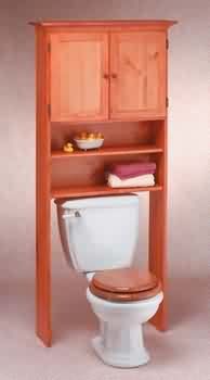Toilet Space Savers store lots of stuff in wasted bathroom space. Choose your Toilet Space Savers here today. Pine space saver fits over the toilet and has ample storage for your bathroom items. Pine cabinet with paneled doors. Top cabinet has two compartments. The unit measures 28 1/2" wide x 67" high x 9 1/2" deep. Heirloom finish. Sorry, this item is Sold Out, and has been discontinued. Thanks!