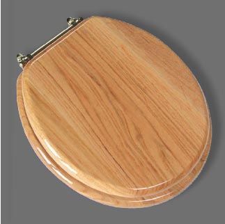 Our Round Hardwood Toilet Seat In Golden Oak Piano Gloss Finish is crafted from specially selected oak hardwood. The exclusive durable finish prevents cracking and warping Chrome Plated hinge. Hinge is 5-1/2" CTC. Seat Measures: 14-3/16" W x 16 5/16" from center of mounting hole to outer edge of seat. NOTE: The manufacturer has replaced the bar style hinge with single post hinges. The have a similar look, but the center bar is missing. Order Your Light Golden Oak Finished Hardwood Toilet Seat Today!