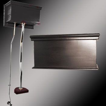 Our High Tank Z-Pipe Conversion Kit will transform your existing toilet bowl into a high tank! The materials and components use the latest 21st century technology. All tanks are a water-saving 1.6 gallons per flush. Ready to install with all mounting parts. Includes Dark Oak flat panel wood tank, liner, supply line, mounting hardware. The flush pipe and supply lines are Polished Stainless/Chrome steel for durability and lasting beauty. Measures: 23" w x 15" h. Projects 10-1/2".Drain Pipe: Adjustable 32" - 47". 1-1/2" diameter.Fill Pipe: Adjustable 22" - 53". 1/2" diameter tubing. Sorry, this item is Sold Out, and no longer available. Thanks!