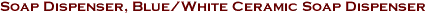 This ceramic soap dispenser is a pretty addition to any bath with a deep sea blue glazed design on a natural white background. It measures 6" high and 2 1/2" in diameter.