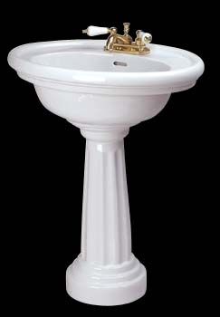 With its Classic Greek and Roman influences, Our Philadelphia Pedestal Sink adds stately elegance to any bathroom. Made of Grade A vitreous china, the attractive open back pedestal hides unsightly drain pipes. Note: Requires standard 4" center Lav Faucet (not included). Measures: 32 1/4" high x 26 1/8" wide overall Pedestal Measures: 23 3/4" high x 11 1/2" wide. Projection From Wall: 19 3/8" Inside Bowl Measures: 19" wide x 11 1/2" front to back, 6 1/2" deep. Order Your Philadelphia Pedestal Sink Today! Sorry, this item is Sold Out, and no longer available. Thanks!