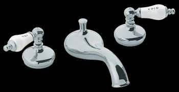 Roman Tub Filler Sets that are superbly built and look fabulous. Obtain your Roman Tub Sets here today. This faucet is ideal for any deck mount tub. Features ceramic disc and 1/4 turn washerless valves in stem assembly. Adjust from 8-15" widespread. Triple Chrome Finish on solid cast brass with porcelain lever handles.