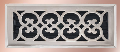 Our Celtic Design Floor Register In Solid Polished Brass boasts superior craftsmanship. Unlike the thin gage plated models found at cut rate retailers, these feature solid brass 3mm construction. The patented damper design allows the addition of hidden scented filters to reduce air pollution and keep homes smelling fresh. Augment the ambiance of your decor with these beautiful, functional faceplates. Measures: 4" x 12". Order Your Celtic Design Brass Floor Registers Today! Sorry, this item has been discontinued, and is no longer available. Thanks!