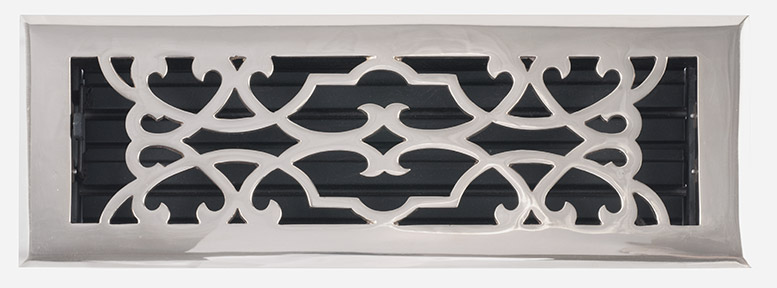 Our Victorian Design Floor Register In Solid Polished Brass boasts superior craftsmanship. Unlike the thin gage plated models found at cut rate retailers, these feature solid brass 3mm construction. The patented damper design allows the addition of hidden scented filters to reduce air pollution and keep homes smelling fresh. Augment the ambiance of your decor with these beautiful, functional faceplates. Measures: 4" x 14". Order Your Victorian Design Brass Floor Registers Today! Sorry, this item has been discontinued, and is no longer available. Thanks!