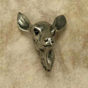Our Fawn Pewter Cabinet Knob will ignite your passion for the wild, and instill in your home or office, the country ambiance of nature's wildlife. This pull will inspire reverence, in nature lovers and game sportsmen alike, for an animal that contributes much to our natural environment. Made from 100% Lead Free Pewter with Brass Finding. Measures: 2" wide x 1 3/4" high with a 1 3/4" projection Preview Our Available Finishes Order Your Fawn Pewter Cabinet Pulls Today!
