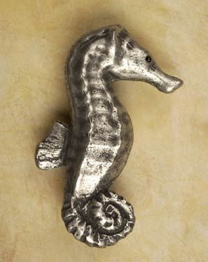 Our Seahorse Pewter Cabinet Knob (Right Facing) will kindle deep-seated reverance for creatures of the ocean, and instill fascination for the Sea's mysteries in your home or office. This maritime pull adds beauty, while creating an atmosphere of peaceful tranquility associated with the Sea and Nautical adventures. Made from 100% Lead Free Pewter with Brass Finding on 3" centers. Measures: 3" wide x 4 1/4" high with a 3/4" projection Preview Our Available Finishes Order Your Seahorse Pewter Cabinet Pulls Today!