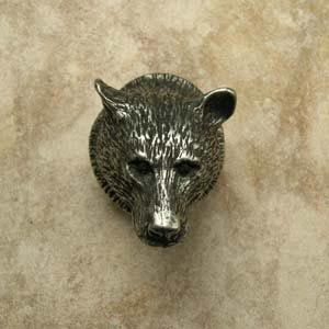 Our Bear Head Pewter Cabinet Knob will ignite your passion for the wild, and instill in your home or office, the country ambiance of nature's wildlife. This pull will inspire reverence, in nature lovers and game sportsmen alike, for an animal that contributes much to our natural environment. Made from 100% Lead Free Pewter with Brass Finding. Measures: 1-1/4" wide x 1 1/2" high with a 1" projection Preview Our Available Finishes Order Your Bear Head Pewter Cabinet Pulls Today!