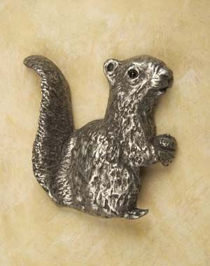 Our Squirrel Pewter Cabinet Knob (Right Face) will ignite your passion for the wild, and instill in your home or office, the country ambiance of nature's wildlife. This pull will inspire reverence for an animal that adds much to our natural environment. Made from 100% Lead Free Pewter with Brass Finding. Measures: 4" wide x 3 1/2" high with a 1" projection Preview Our Available Finishes Order Your Squirrel Pewter Cabinet Pulls Today!
