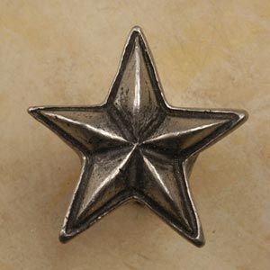 Our Large Texas Star Pewter Cabinet Knob will spark your imagination, and instill in your home or office, the wistful intrigue and romance of the Old West. This captivating pull will inspire reverence for a bygone era that is so much a part of our American Heritage. Made from 100% Lead Free Pewter with Brass Finding. Measures: 2 1/4" wide x 2" high with a 1" projection. Preview Our Available Finishes Order Your Large Texas Star Cabinet Pulls Today!