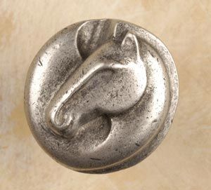 Our Dynasty II Pewter Horse Cabinet Knob will spur the imagination, and instill in your home or office, the wistful intrigue and romance of the old and modern West. This captivating pull will inspire reverence for an animal that is so much a part of our American Heritage. Made from 100% Lead Free Pewter with Brass Finding. Measures: 1 3/8" wide x 1 3/8" high with a 1" projection. Preview Our Available Finishes Order Your Dynasty II Pewter Horse Cabinet Pulls Today!
