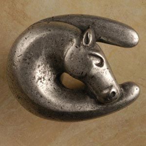 Our For Luck Horse Pewter Cabinet Knob will spur the imagination, and instill in your home or office, the wistful intrigue and romance of the old and modern West. This captivating pull will inspire reverence for an animal that is so much a part of our American Heritage. Made from 100% Lead Free Pewter with Brass Finding. Measures: 1 3/4" wide x 1 1/4" high with a 1" projection Preview Our Available Finishes Order Your For Luck Pewter Horse Cabinet Pulls From Horseshoe-Hardware Today!