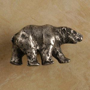 Our Bear Pewter Cabinet Knob (Right Face) will ignite your passion for the wild, and instill in your home or office, the country ambiance of nature's wildlife. This pull will inspire reverence, in nature lovers and game sportsmen alike, for an animal that contributes much to our natural environment. Made from 100% Lead Free Pewter with Brass Finding. Measures: 1 1/2" wide x 3/4" high with a 3/4" projection Preview Our Available Finishes Order Your Bear Pewter Cabinet Pulls Today!