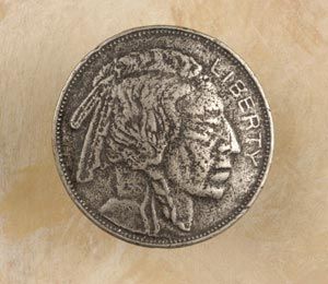 Our Indian Head Nickel Pewter Cabinet Knob will spur the imagination, and instill in your home or office, the wistful intrigue and romance of the Old West. This captivating pull will inspire reverence for a bygone era that is so much a part of our American Heritage. Made from 100% Lead Free Pewter with Brass Finding. Measures: 1 1/2" wide x 1 1/2 high with a 3/4" projection. Preview Our Available Finishes Order Your Indian Head Nickel Pewter Cabinet Pulls Today!