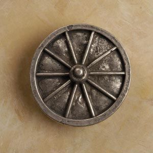 Our Medium Wagon Wheel Pewter Cabinet Knob will spur the imagination, and instill in your home or office, the wistful intrigue and romance of the Old West. This captivating pull will inspire reverence for a bygone era that is so much a part of our American Heritage. Made from 100% Lead Free Pewter with Brass Finding. Measures: 1 1/2" wide x 1 1/2 high with a 1" projection. Preview Our Available Finishes Order Your Medium Wagon Wheel Pewter Cabinet Pulls Today!
