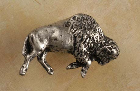 Our Buffalo Pewter Cabinet Knob (Right Face) will spur the imagination, and instill in your home or office, the country ambiance of the old and modern West. From Range Lands to National Parks, this captivating pull will inspire reverence for an animal that is so much a part of our American Heritage. Made from 100% Lead Free Pewter with Brass Finding.