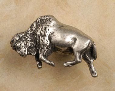 Our Buffalo Pewter Cabinet Knob (Left Face) will spur the imagination, and instill in your home or office, the country ambiance of the old and modern West. From Range Lands to National Parks, this captivating pull will inspire reverence for an animal that is so much a part of our American Heritage. Made from 100% Lead Free Pewter with Brass Finding. Measures: 1 1/2" wide x 1" high with a 1/2" projection Preview Our Available Finishes Order Your Buffalo Pewter Cabinet Pulls Today!