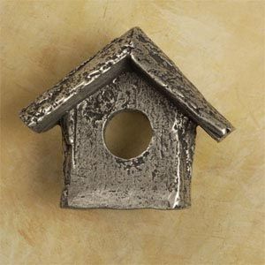 Our Birdhouse Pewter Cabinet Knob will ignite your passion for the wild, and instill in your home or office, the country ambiance of nature's wildlife. This pull will inspire reverence, in nature lovers and bird lovers alike, for an animal that contributes much to our natural environment. Made from 100% Lead Free Pewter with Brass Finding. Measures: 3" wide x 2 1/2" high with a 1 1/2" projection Preview Our Available Finishes Order Your Birdhouse Pewter Cabinet Pulls Today!