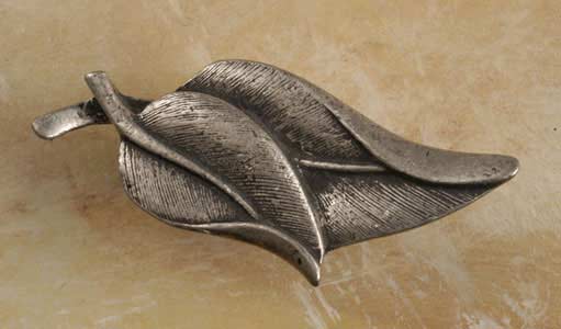 Our Large Double Leaves Pewter Cabinet Knob will ignite your passion for the outdoors, and instill in your home or office, the country ambiance of nature's landscapes. This pull will inspire reverence, in nature admirers and horticulturists alike, for the beautiful leaves that act as nature's autumn paintbrush. Made from 100% Lead Free Pewter with Brass Finding. May be used vertically or horizontally. Measures: 2 1/2" wide x 1" high with a 3/4" projection Preview Our Available Finishes Order Your Double Leaves Pewter Cabinet Pulls Today!