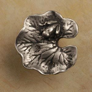 Our Small Lily Pad Pewter Cabinet Knob will ignite your passion for the wild, and instill in your home or office, the country ambiance of nature's wildlife, ponds, and streams. This pull will inspire reverence, in nature lovers and frogs alike, for an amphibious perch and shelter that contributes much to our natural environment. Made from 100% Lead Free Pewter with Brass Finding. Measures: 1" wide x 1" high with a 3/4" projection Preview Our Available Finishes Order Your Lilly Pad Cabinet Knobs Today!