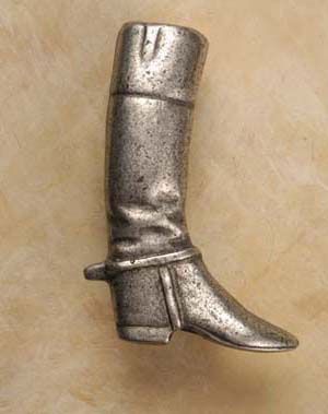 Our Riding Boot Pewter Cabinet Knob (Right Face) will spur the imagination, and instill in your home or office, the wistful intrigue and romance of the old and modern West. This captivating pull will inspire reverence for an elegant sport that is so much a part of our American Heritage. Made from 100% Lead Free Pewter with Brass Finding. Measures: 1 1/2" wide x 1 3/4" high with a 1" projection Preview Our Available Finishes Order Your Riding Boot Pewter Cabinet Pulls Today!