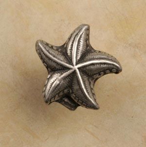 Our Small Starfish Pewter Cabinet Knob will kindle deep-seated reverance for creatures of the ocean, and instill fascination for the Sea's mysteries in your home or office. This maritime pull adds beauty, while creating an atmosphere of peaceful tranquility associated with the Sea and Nautical adventures. Made from 100% Lead Free Pewter with Brass Finding. Measures: 3/4" wide x 3/4" high with a 3/4" projection Preview Our Available Finishes Order Your Small Starfish Pewter Cabinet Pulls Today!