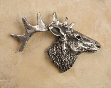 Our Medium Elk Head Pewter Cabinet Knob (Right Face) will ignite your passion for the wild, and instill in your home or office, the country ambiance of nature's wildlife. This pull will inspire reverence, in nature lovers and game sportsmen alike, for an animal that contributes much to our natural environment. Made from 100% Lead Free Pewter with Brass Finding. Measures: 3 3/4" wide x 2 1/2" high with a 3/4" projection Preview Our Available Finishes Order Your Medium Elk Head Pewter Cabinet Pulls Today!