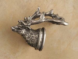 Our Small Elk Head Cabinet Knob (Left Face) will ignite your passion for the wild, and instill in your home or office, the country ambiance of nature's wildlife. This pull will inspire reverence, in nature lovers and game sportsmen alike, for an animal that contributes much to our natural environment. Made from 100% Lead Free Pewter with Brass Finding. Measures: 1 3/4" wide x 1 1/2" high with a 3/4" projection Preview Our Available Finishes Order Your Small Elk Head Pewter Cabinet Pulls Today!