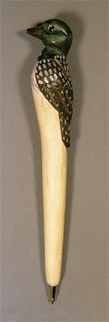 Our Loon Handcarved Wood Pen is painstakenly handcarved, and painted by hand. Beautiful detailing enhances this unique wildlife theme pen. A satin clear coat finish has been applied to protect the detailing. Measures: 6-1/8" L Order Your Loon Handcarved Wood Pen Today!