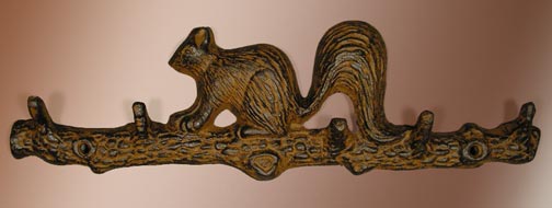 Our Cast Iron Squirrel On Tree Branch 5 Hook Key Holder is a perfect match for Country Atmosphere. This unusual key holder is cast in iron and finished in rustic dark brown, with a light brown wash. A great way to keep your keys organized. Makes a very unique gift. Measures: 13 1/2" wide x 4" high. Please note: We are unable to offer free shipping on this item. Even though the free shipping option appears in the order cart, we cannot honor that option for this item. Thanks! Order Your Squirrel Cast Iron Key Holder Today!