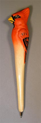 Our Cardinal Handcarved Wood Pen is painstakenly handcarved, and painted by hand. Beautiful detailing enhances this unique Bird replica pen. A satin clear coat finish has been applied to protect the detailing. Measures: 6-3/8" L Order Your Cardinal Handcarved Wood Pen Today!