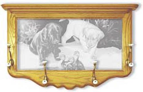 Our "Next Generation" Puppies Etched Mirror Coat Rack by Linda Picken is hand-selected for luster, framed in hand-rubbed oak hardwood, and is ready to hang. Reflect personality and image, while soothing the psyche with this functional artwork piece. Features four sturdy brass hangers with an antique brass finish and porcelain tips. Comes fully assembled. Measures: 30" w x 18" h. Order Your Solid Oak Framed "Next Generation" Puppies Etched Mirror Coat RackToday!