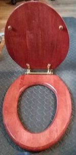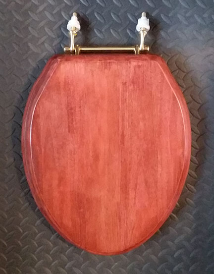 Our Bright Cherry Finish Elongated Toilet Seat is crafted from solid oak, and features a Satin Cherry finish. Single Post style plated brass hinges are standard, but can be upgraded to a Solid Polished Brass vintage style hinge (pictured). Similar Chrome hinges can be substituted. Use the drop-down menu below to select your hinge choice. NOTE: The manufacturer has replaced the bar style hinge with single post hinges. They have a similar look, but the center bar is missing. Order Your Bright Cherry Finish Elongated Toilet Seat Today!